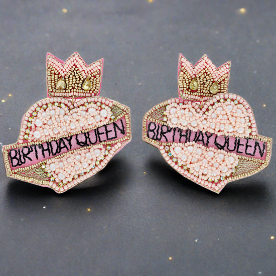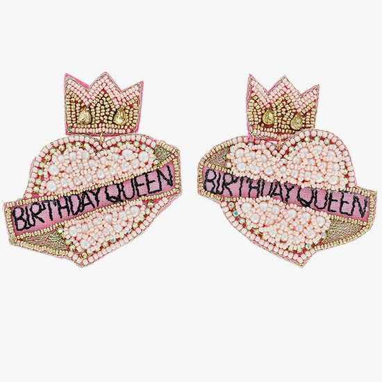 Birthday Queen Pink Crown Heart Earrings