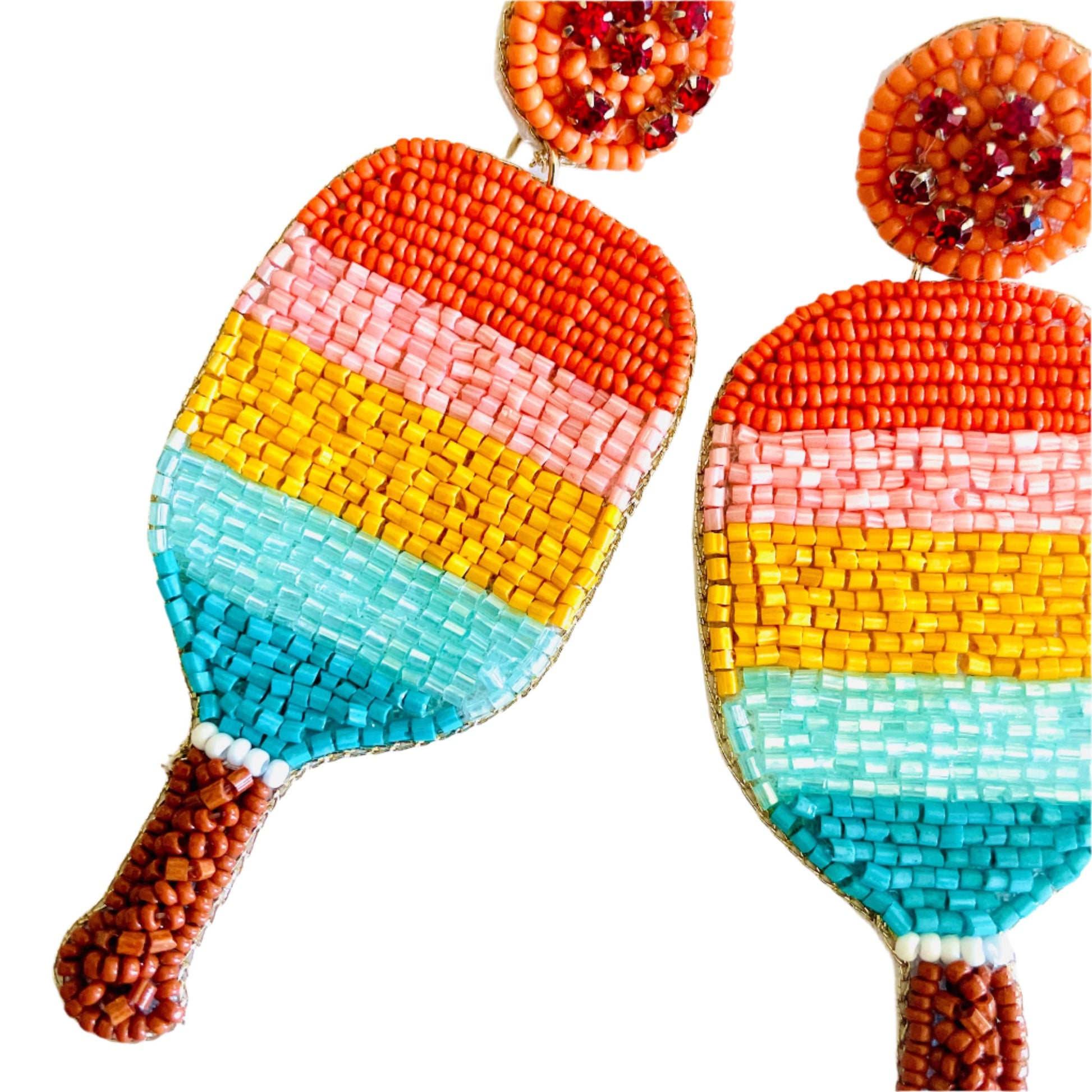 For the pickle ball lover and pickle ball player, nothing is ever too much! These fun beaded earrings are the perfect touch for any outfit with multicolor stripes and make a great hit for the hottest sport in America.