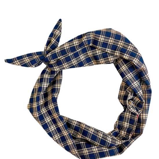 Tie Headband - Navy and Tan Plaid